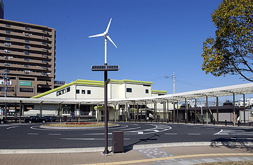 久居市では、市西部にある青山高原の頂上付近にクリーンエネルギーとして注目を浴びている風力発電施設を整備するなど、環境問題に取り組んでいることから、ロータリー歩道部及び駐車場にハイブリッド太陽灯を3基設置し、豊かな自然に恵まれた〈風のまち〉の魅力をアピールしています。