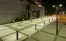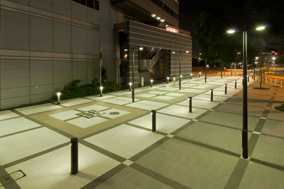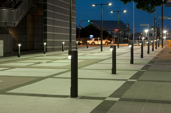 また、商店街へと続く通りには特注のセルカアプローチライトが設置されました。水銀ランプの爽やかな光で夜間も安全に足元を照らし出し、視線誘導の役目を果たしています。