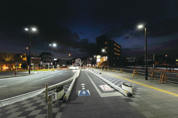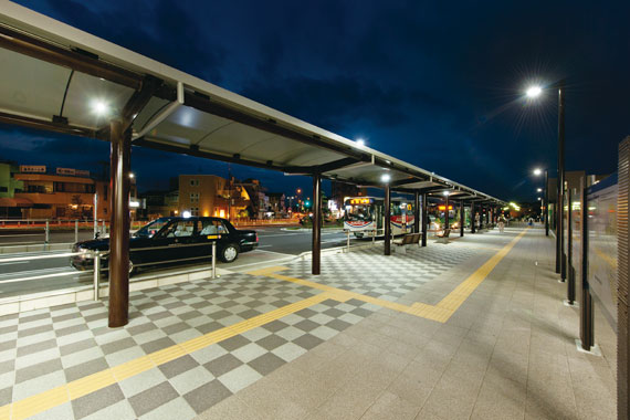 省エネに貢献するLEDの光で新たに完成した駅前広場を安全・快適に照らし出す