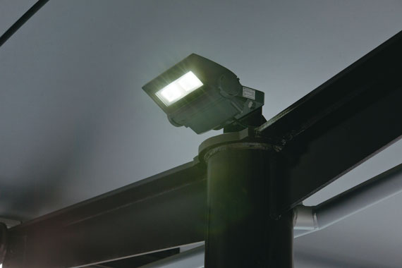 照明については、当初はセラミックメタルハライドランプを計画していましたが、省エネ・環境に配慮し、LED照明が採用されました。LED道路灯、LED車歩道灯、LED歩道灯を適切な位置に配置して照度約20ℓx以上と必要な明るさを確保、夜間も安全で快適な照明環境を創出しています。また、シェルター照明にはコンパクトで高効率なLED投光器を採用し、消費電力を削減しつつ、夜間の安全性を高めています。長寿命のLED照明は省メンテナンスという観点から維持管理費の削減にも貢献してくれるものと考えています。