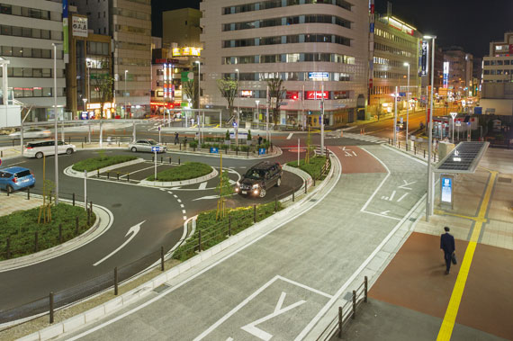 環境に配慮したLEDの光が新しくなった川越駅西口駅前広場を安全・快適に照らし出す
