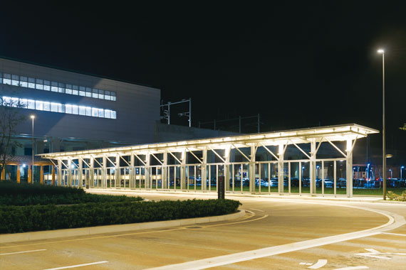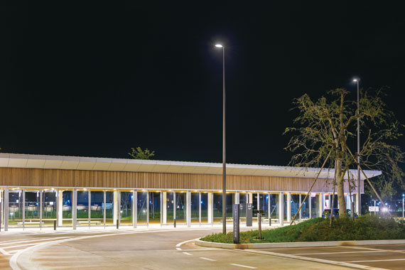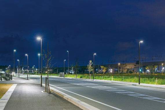 東口駅前広場や西口駅前広場周辺を照らす照明には、LED道路灯「レディオック ロード」やLED街路灯「レディオック エリア ミーティスB」などのLED照明が採用されました。環境に配慮し省エネを推進するLEDの光で駅周辺エリアを明るく快適に照らしています。