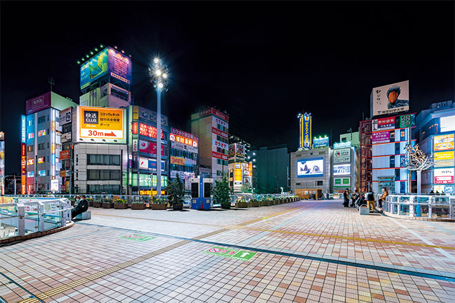 活気溢れるターミナル駅周辺の賑わいを照らすLEDのあかり