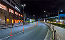 北千住駅西口広場ほか街路照明設備改修工事につきましては、駅前に賑やかな繁華街があり、交通量も多い場所での工事であったため、交通警備及び周辺への騒音などに十分注意のうえ、作業を進めました。そして、工事日程に合わせて車道とバスプールの通行規制を夜10時から朝5時まで行い、工事を実施しました。集中照明塔は、昼白色と電球色のLED投光器「レディオック フラッド スポラート」を各6灯ずつ設置し、夏季は爽やかな白色の光、冬季は暖かみのある温暖色の光、そして春や秋の中間期は微妙に色味が変化する中間色の光となるよう、照明制御システム「ITACS-DS(アイタックス ディーエス)コントロールシステム」でプログラム設定を行い、季節に応じた光で広場を照らしています。また、集中照明塔には災害などで電源が落ちた時に備えた非常用の「レディオック フラッド スポラート 210Wタイプ」も5台設置されています。昇降式の既設架台を撤去し、ポールを塗装したうえで新規にLED投光器を設置する工程は、高さが25mある照明塔での危険を伴う作業だったため、高所作業車2台を使って安全を確保しながら慎重に工事を進めました。道路灯も既設ポールを使用して灯具をLED道路灯「レディオック ロード」に更新し、省エネに貢献するあかりで明るく快適に通りを照らしています。