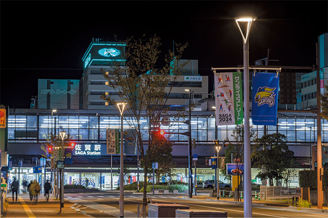 その一環として、JR佐賀駅北口から「SAGAサンライズパーク」へと続くメインストリートとなる市道三溝線の再整備を行いました。歩道を拡幅、自転車レーンを設置するなど、安全性を向上するとともに歩行者に優しい道となった市道三溝線は、「サンライズストリート」という愛称を持つ新たなシンボルロードとして生まれ変わりました。