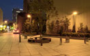 これまでは夜間になると暗かった場所であったことから、照明については特に留意のうえ、シンプルなデザインのオリジナル照明器具を設置、光源にはアイ ツインアークを採用し、4月~9月は水銀ランプ、10月~3月は高圧ナトリウムランプと季節に合わせた光色に変化させることで、市中心部の賑わいを効果的に演出しています。