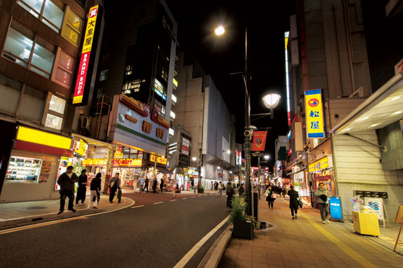 お客さまへのおもてなしの空間という位置づけで整備された通りをシンプルなデザインの街路灯で快適に照らし出す