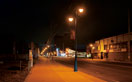 歩道整備工事が完了した町並みを暖かみのあるあかりで照らし、落ち着きのある夜間景観を創出