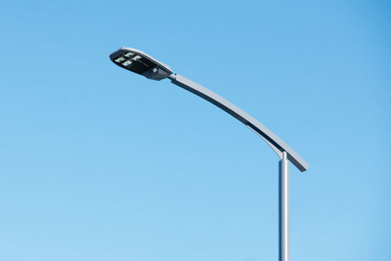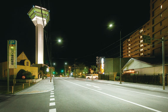 落ち着きのある街並みとの調和を図り、モダンですっきりとしたデザインのLED道路灯を設置