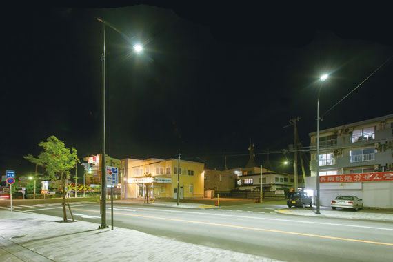 省エネと省メンテナンスを実現し環境に貢献するLED照明とし、「道路照明施設設置基準・同解説」に準拠する歩道の平均路面照度5ℓx、照度均斉度0.2以上を確保、安全で快適な歩行空間をつくることが出来たと考えています。