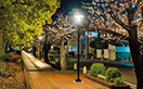 閑静な住宅街にある桜並木を電球色のLEDポールライトで照らし、落ち着きのある夜間景観を創出