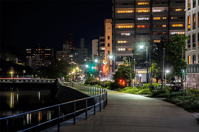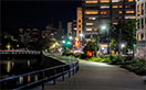 河岸緑地の街路灯LED化は順次進行中で、水辺の開放的な雰囲気を楽しみながら散歩やジョギングができる場としてもご利用いただいている遊歩道を、安全・快適な光で照らしています。