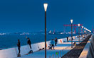 市民の憩いの場として親しまれる海辺の遊歩道をやさしく照らすあかり