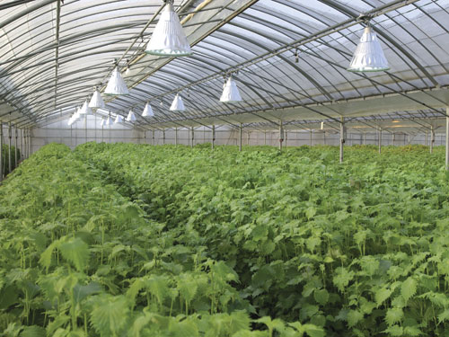 香り高い大葉を安定供給するため有機低農薬栽培に補光を利用