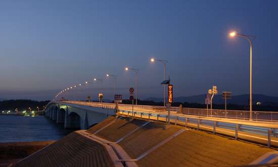 環境との調和を重視した橋梁をやさしく照らし出す光