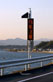 また、橋梁部への入口2か所には、電源をソーラーパネルで発電・供給し、バッテリーに備えることが出来るソーラー表示板が設置されました。表示板は、通常「安全運転」を表示し、風速計で強風状態を感知すると「強風注意」に表示が切り替わる仕組みとなっていて、通行中の運転者に対して注意を喚起し、事故を未然に防止する役目を果たしています。