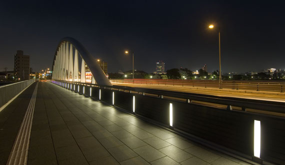 景観に調和する単弦パイプアーチ橋を快適に照らす光