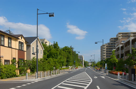 街路照明についても、緑豊かな街並みにふさわしい快適で安全な視環境をつくるために、それぞれの通りの性格に合わせて十分に検討された照明計画が実施され、新しい街並みを高品質な照明でやさしく照らしています。