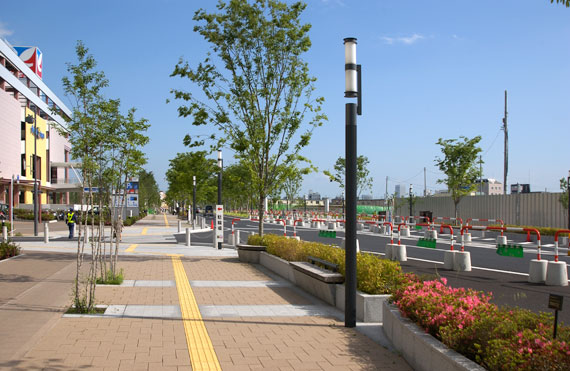 灯具デザインについては全体の計画をまとめた(株)アーバン・ハウス都市建築研究所が担当しました。埼玉県は歴史がある町で和風の雰囲気を考慮し、車道灯歩道灯ともに謡曲楽器の鼓をイメージしたデザインとしています。