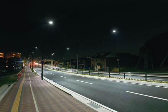 久留米市に開通した新しい都市計画道路を省エネに貢献するLEDの光で安全・快適に照らし出す