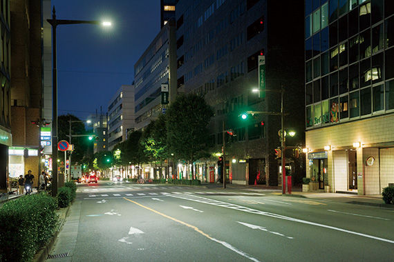 道路灯のLED化を実施し、大幅な省エネを実現しつつ賑わいのある通りを快適に照らし出す