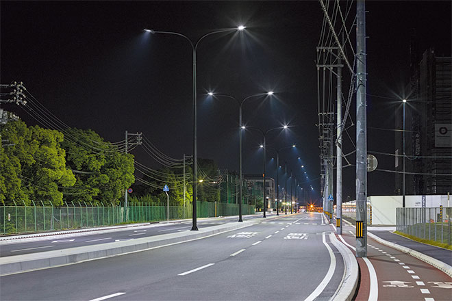 新たなまちづくりが進むエリアの基幹道路を安全に照らす照明のかたち