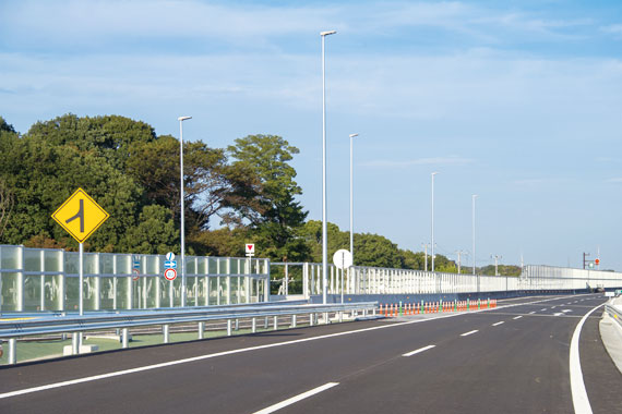 交通利便性の向上に大きく寄与する圏央道の新規開通区間を、省エネに貢献するLEDの光で安全かつ快適に照らし出す