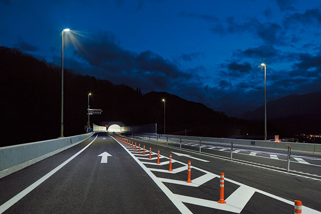 納入事例 メニュー カテゴリ一覧 地図から探す 竣工年月一覧 Myリスト 閲覧履歴 道路照明 IC・JCT 中部横断道 六郷インターチェンジ山梨県西八代郡市川三郷町 中部横断自動車道の山梨県区間に開通した新しい道を安全に照らすLED照明 Myリストに追加 トンネルへと続く道路を長寿命で省エネ、環境に配慮したLED道路灯「レディオック ロード」で照らしている。 施設概要 施主 国土交通省 関東地方整備局 設計 電設コンサルタンツ(株) 電気工事 住友電設(株) 竣工 2018年3月 この事例の所在地を地図で見る 主な納入器具 LED道路灯 レディオック ロード - 10台施設概要中部横断自動車道(中部横断道) 同カテゴリの納入事例 中部横断道 佐久南インターチェンジ長野県 熊本西環状道路 和泉インターチェンジ熊本県 新東名道 新城インターチェンジ愛知県 東九州道 佐伯堅田インターチェンジ大分県 圏央道 白岡菖蒲インターチェンジ埼玉県 西湘バイパス 早川ジャンクション神奈川県