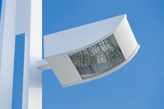 商業施設の個性的な外観デザインに調和する屋外照明のかたち