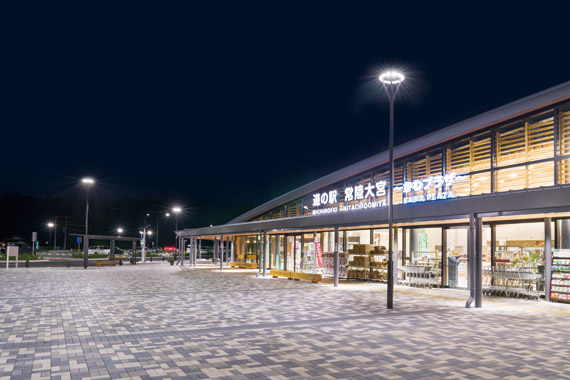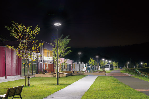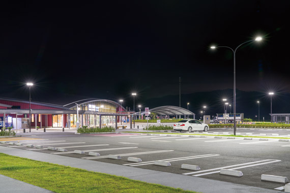 省エネに貢献するLEDの光で滞在型の施設として人気の高い「道の駅」の屋外空間を快適に照らし出す
