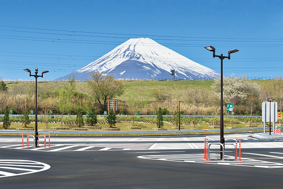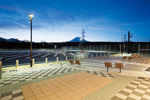 富士の雄大な姿をのぞむことが出来るパーキングエリアの屋外照明プラン
