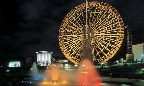 屋外では、リバーホールや本館外壁の大陶板画、大型水車、噴水のライトアップを実施しており、アミューズメント性を大切にしつつ公園的な意味も持ち合わせている当博物館の夜間景観を楽しく演出しています。