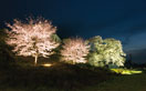 高彩度・高演色LED投光器「美vidレディオック フラッド ネオ」で桜の淡いピンク色を魅力的に照らし、情緒ある雰囲気を演出