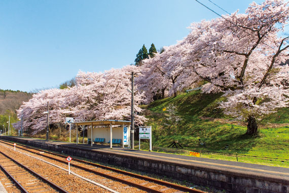 Myリストに追加JR舞木駅は、磐越東線(福島県いわき市いわき駅~郡山市郡山駅間)の郡山駅から1つ目の駅で1日の平均利用者数は700人ほどの無人駅です。駅構内には、線路の下に敷く砕石を作って運ぶために作られたバラストホッパーの遺構(石垣)が密やかに佇んでいます。舞木駅は1914年7月に開業し、1993年3月に完全無人化となりましたが、駅の開業当時、駅の開業を祝い地元住民が植えた桜(ソメイヨシノ)が今でも残っています。その後、駅の無人化とともに、広大な敷地を有する駅構内南側の遊休地部分が荒地となっていましたが、地元住民で組織する「舞木町まちづくり協議会」が、舞木駅を管轄している郡山駅(2016年4月以前は三春駅)の了解のもと、荒地部分の雑木伐採や除草作業を行っています。舞木町まちづくり協議会は、2004年に「次世代への魅力あるまちづくり」を目指して非営利団体として組織し、「駅」を基点とした魅力あるまちづくりを想い、同駅構内の遊休地部分に桜の苗木やツツジなどを植えてきました。