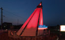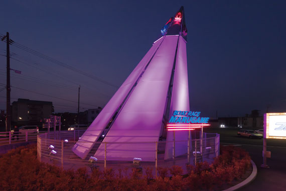 多彩な色を自在に表現できるフルカラーLED照明で競艇場のシンボルタワーを照らし、表情豊かなライトアップを実現