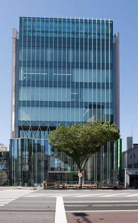 省エネに配慮した設計コンセプトのビルを効果的に照らすLEDの光