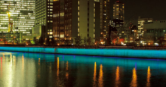 水都大阪 堂島川玉江橋上流左岸(ほたるまち前護岸)ライトアップ大阪府大阪市北区