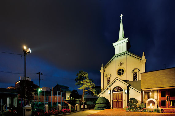 ロマネスク風様式の美しい教会を華麗な印象にライトアップ