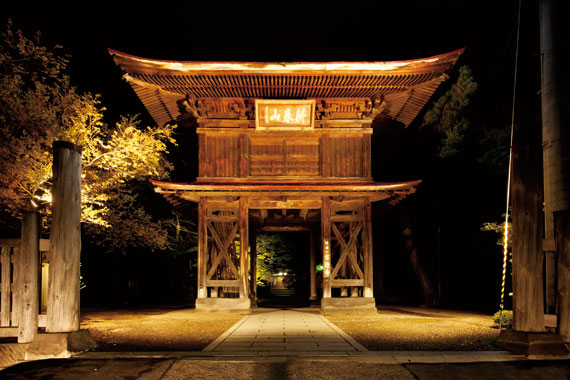 山門の無駄のない凛とした美しさをライトアップで引き出す
