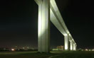 新湊大橋は、富山県射水市に位置する富山新港港口部の東西地区を結ぶ日本海側最大級の斜張橋で、2012年9月に開通しました。総延長はアーチ部分も含めて約3.6Km、海上に架かる主橋梁部は600m、橋を支える主塔の高さは127mという規模を誇り、橋桁から海面までの高さは47mで、大型船もスムーズに航行することができます。海抜約50mのところに2車線の道路があり、その下に自転車と歩行者の道路(愛称:あいの風プロムナード)がある2層構造であることも大きな特長となっています(自転車・歩行者用道路は2013年春頃開通予定)。新湊大橋の開通により港の東西地区がつながり、物流・人流の円滑化と効率化、物流コストの削減が図られるとともに、既存の観光資源と連携した新たなみなと空間の創出に期待が寄せられています。白色で統一され、周囲とも調和するシャープで優美な橋を幻想的に浮かび上がらせるライトアップについては、設計当初HIDランプの使用を考えていましたが、長寿命・低消費電力による維持管理費用の低減やCO₂排出量削減による環境負荷の低減を図るためLED照明の導入を検討。