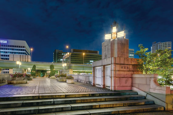 大江橋と淀屋橋は、大阪のメインストリートである御堂筋の一部となっていて、国道25号に指定され多くの人に利用されている橋です。現在の橋は、1935年に当時としては珍しいデザイン公募が行われたうえで竣工しました。2008年には「大江橋及び淀屋橋」として、重要文化財に指定されています。大江橋の隣の歩行者専用橋、水晶橋は、当初は河川浄化を目的に堂島川可動堰として建設された堰で、その後改装整備が行われ、上部を歩行者に開放し今の水晶橋となりました。水晶橋は1990年から、大江橋と淀屋橋は2008年からHID投光器にて橋梁のライトアップが行われていましたが、今回の改修工事で、省エネ化を推進するためLED投光器に更新されました。中之島地区のエリアコンセプトに沿ったかたちで、光色を電球色に統一し周辺景観との調和を図っています。
