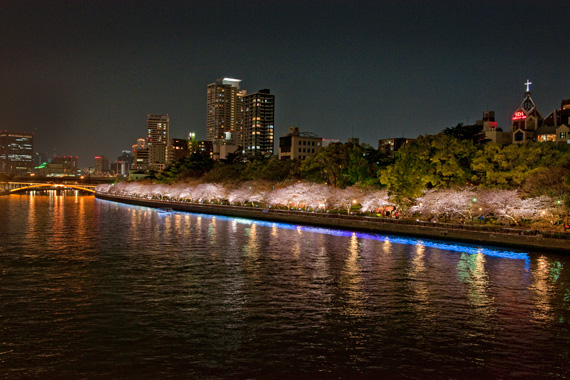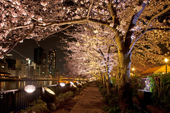 Myリストに追加大阪市の天満橋から天神橋の間、大川沿いにある南天満公園は、桜の名所であり、対岸には天満橋駅や八軒家浜があり、公園周辺の環境は賑わいを見せています。大阪府では、水都大阪の再生として「水の回廊」を整備し、新たな都市魅力を創出する取り組みを進めています。資産を活用した効果的な光の景観形成を推進し、他都市にない魅力を発信するため、南天満公園の水辺の桜並木をいかしたライトアップが計画されました。