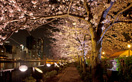 水辺の桜並木をいかし、季節に応じて潤いのある夜間景観を多彩な光で演出