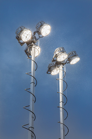 災害現場での夜間における復旧作業などを行う照明車にLED投光器を納入