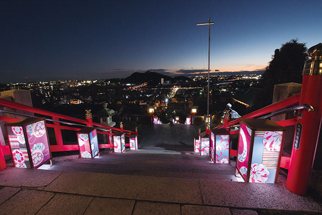 ライトアップは夕刻から明け方まで自動制御で点灯しており、市内から望んだ際も山腹に浮かび上がる社殿が魅力的な夜間景観を演出し、まちのシンボルとして親しまれています。夜間照明環境を整備している織姫神社は、若い方々からの人気も高く、これからも皆さまに愛される神社として、より多くの方々に参拝いただけることを願っております。