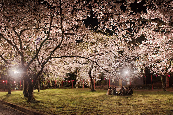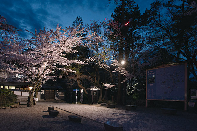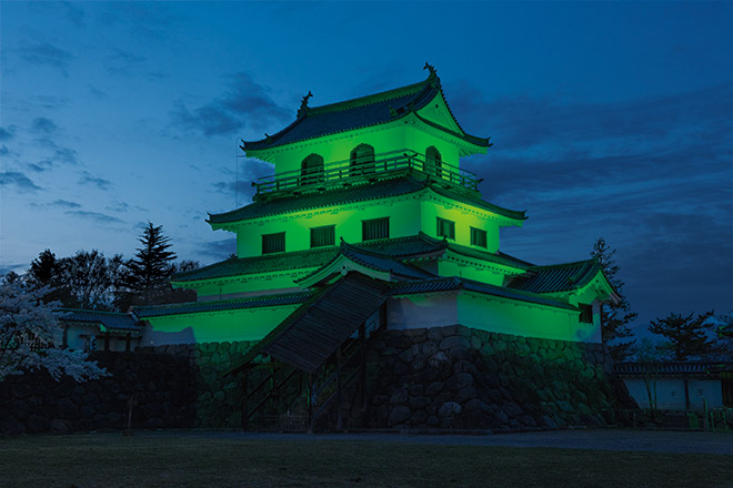 城下町のシンボルとして人気の高い白石城と咲き誇る桜を幻想的に照らす光の競演