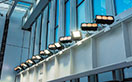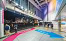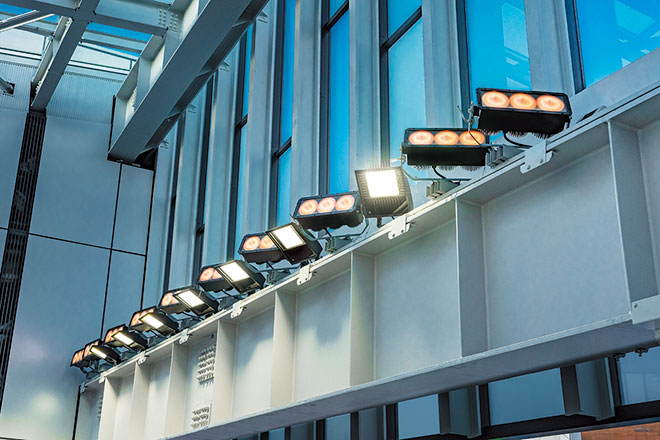 自然光が溢れ、明るくモダンな印象の新駅舎北側のガラス壁面を照らすライトアップについては、さまざまな文化を発信する下北沢の街にふさわしい、多様性のあるライトアップで地域のイベントや季節に合わせた演出を行っています。多彩な色の光を自由自在に表現できるフルカラーLED投光器「レディオック フラッド フルカラー 120Wタイプ」をガラスカーテンウォール側の大梁に設置し、奥の壁面上部を照らし出すことで相互反射により空間全体にフルカラーの光が広がり、より効果的な照明演出を実現しました。