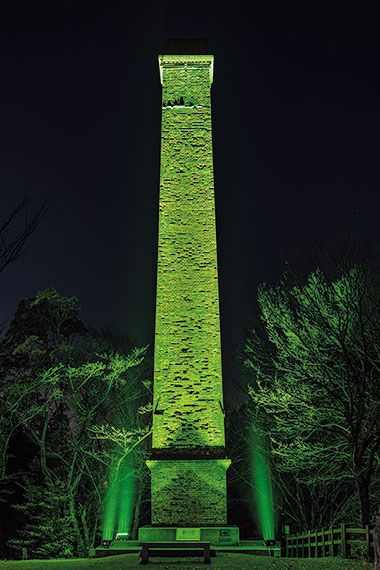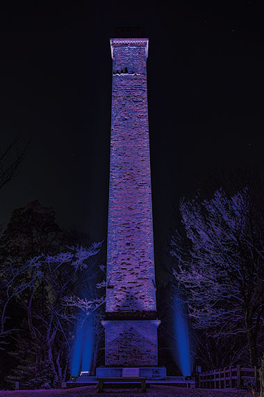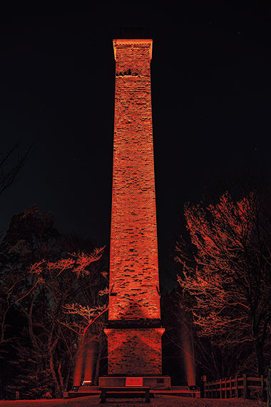 新居浜市の産業遺産のシンボルとして親しまれる煙突を照らすあかり