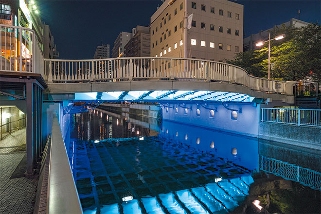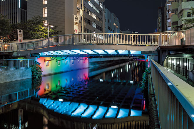 運河に架かる橋をライトアップ。彩り豊かな景観をつくる
