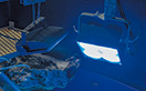 サンシャイン水族館では、2023年4月、南国のサンゴ礁をイメージした水量約240tのフラッグシップ水槽「サンシャインラグーン」の照明LED化改修を実施。省エネ化を図るとともに、より環境に配慮した設備とすることを主目的としました。LEDは電力量削減に貢献するほか、発熱量が少ない点も特長のひとつです。そのため、既設メタルハライドランプで必要だった夏期の水温冷却装置にかかるコストや電力の削減にも繋がるのではと考えています。一面に青の世界が広がる既設の水槽イメージを表現するために、手前にはコンパクトなLED投光器「レディオック フラッド ネオ 130クラス」を、奥にはフルカラーLED投光器「レディオック フラッド フルカラー 160Wタイプ」を配置しました。1台ごとに緻密な角度調整と調光を行い、太陽光のような色味から最奥は深い青色へと照明でグラデーションをつけながら、壁面や床との境目を目立たせないようにすることで奥行きを感じられる演出を大切にしています。フルカラーLED投光器は、クラゲエリアに導入したフルカラーコントローラにつなげて制御することができ、同時に調光卓操作盤を採用したことで外部からの接続も可能となっています。